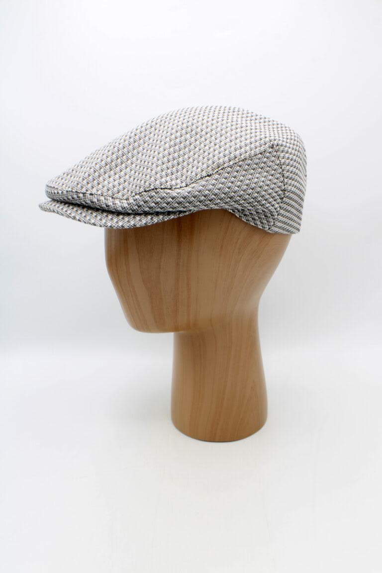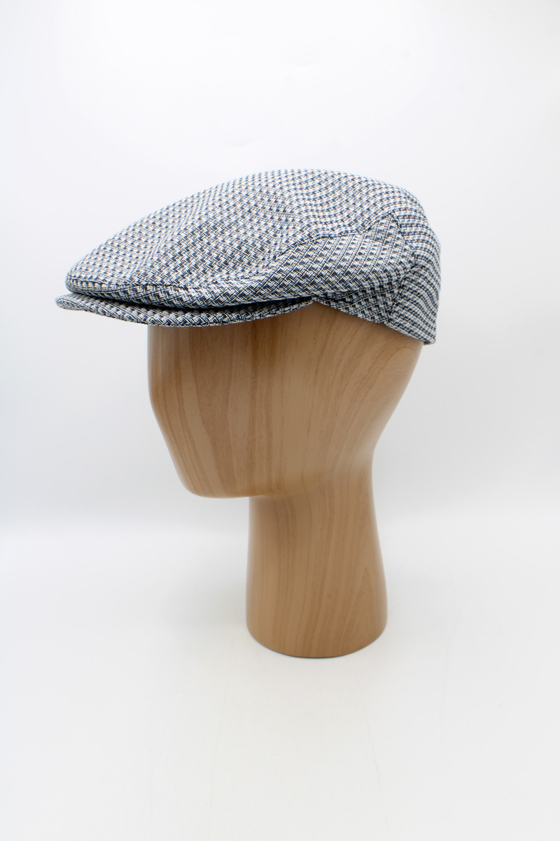 Boina Piemonte Micro-Xadrez em algodão leve, de inspiração italiana, confortável e respirável, ideal para primavera/verão e fácil de combinar com diferentes estilos.