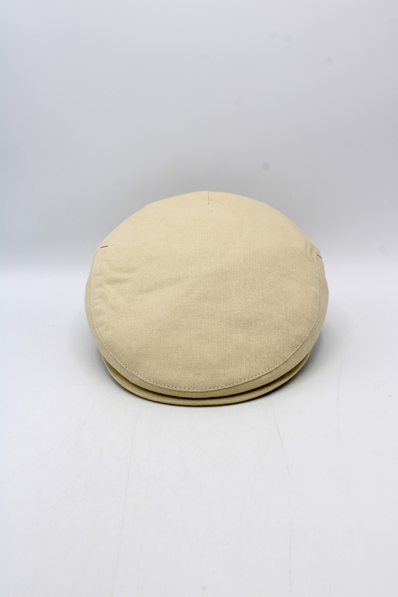 O design Piemonte apresenta copa ampla e ajuste confortável. A mistura de linho e algodão cria textura distinta — o linho acrescenta estrutura e frescura, o algodão suaviza o toque. Quatro cores disponíveis: bege claro, preto, verde e azul. Opções versáteis para coordenar com looks casuais ou mais formais.