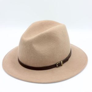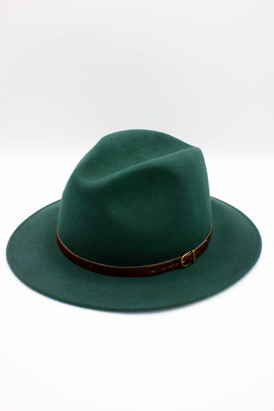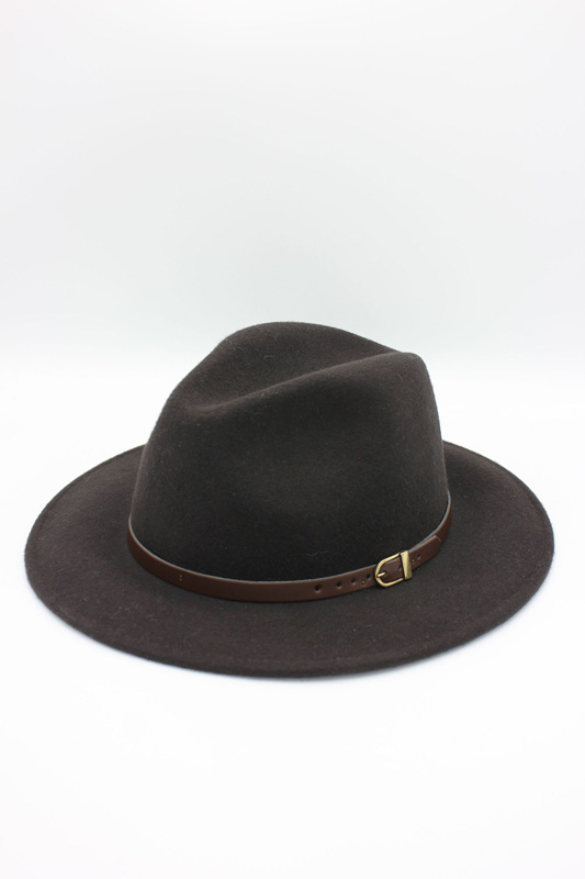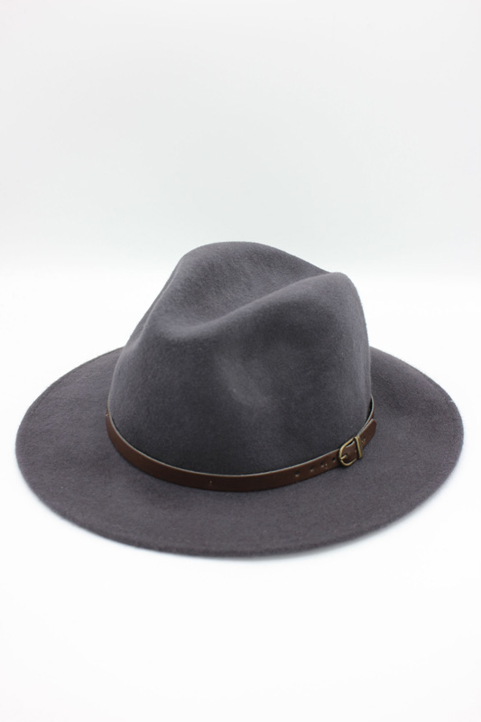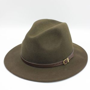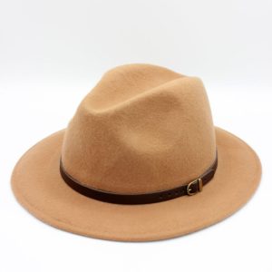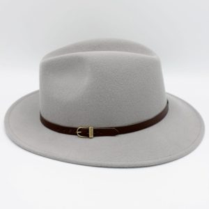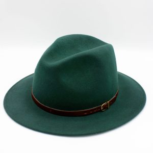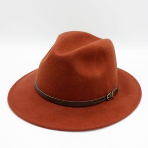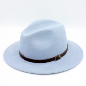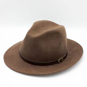- Estilo: Fedora clássico com aba média e copa alta com vinco central